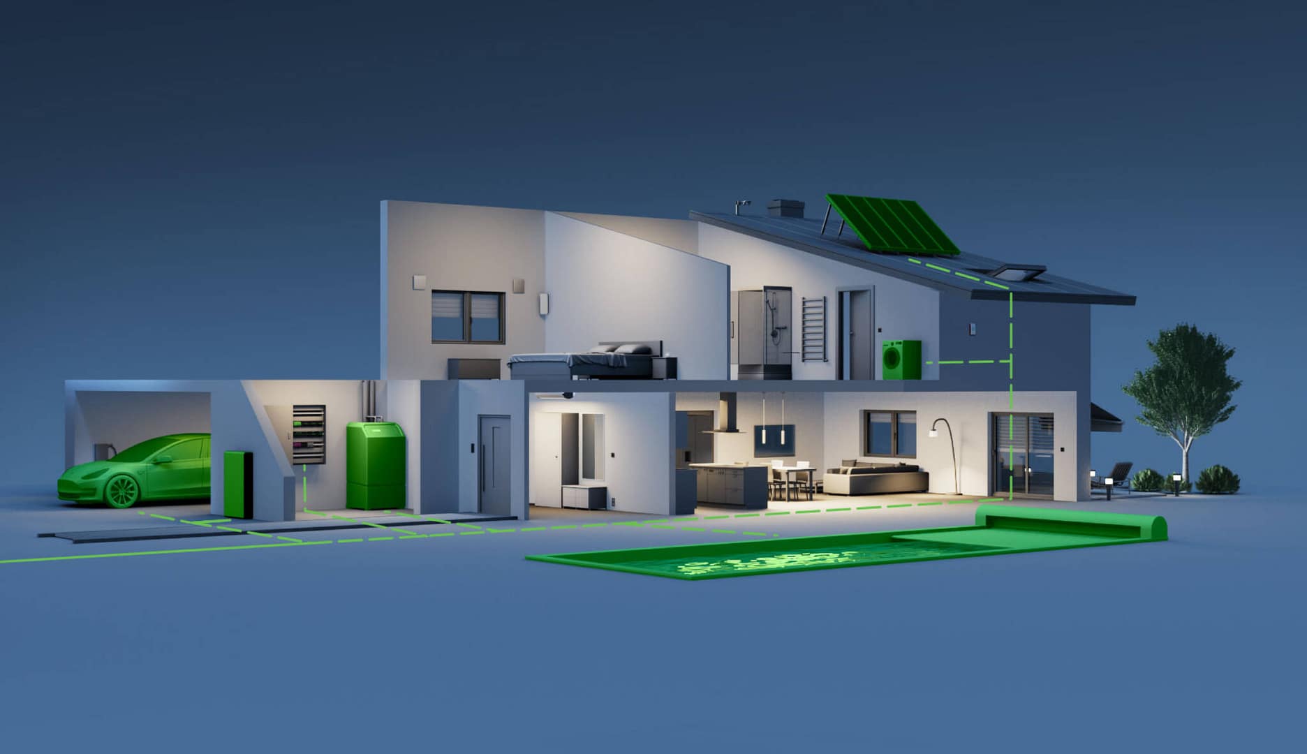 - Photovoltaik und Batteriespeicher: Mit einer PV-Anlage und einem Batteriespeicher nutzen Sie Ihren Strom dann, wenn Sie ihn benötigen – unabhängig vom Sonnenstand. So werden auch Abendstunden effizient abgedeckt.